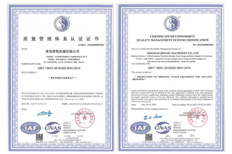 青島青牧機械有限公司成立于2013年,是一家集研發(fā)、生產(chǎn)、銷售、服務(wù)于一體的綜合性企業(yè)。公司專注于家禽飲水設(shè)備的研發(fā)和生產(chǎn),擁有專業(yè)的研發(fā)團隊、先進(jìn)的加工設(shè)備以及自動化組裝線,力求打造“簡單、高效、環(huán)?!钡母叨饲萦蔑嬎到y(tǒng)。